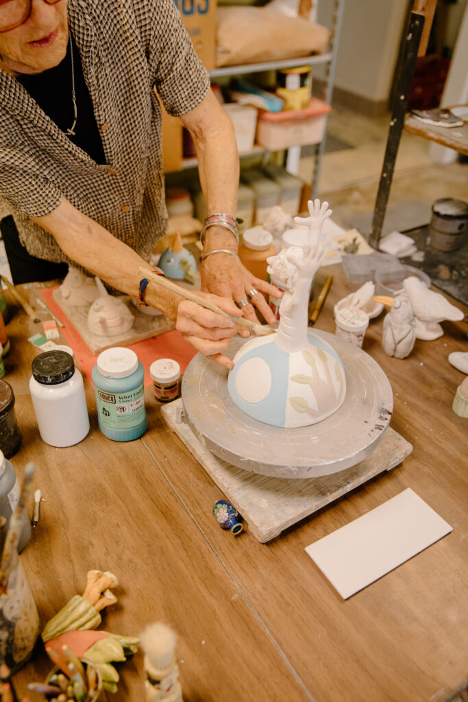Marilee began her nearly 40-year career in ceramics creating utilitarian pieces like bowls and casserole dishes. As her technical skills evolved, so did her desire for deeper creative expression. What followed was the development of an instantly recognizable and deeply personal artistic style.